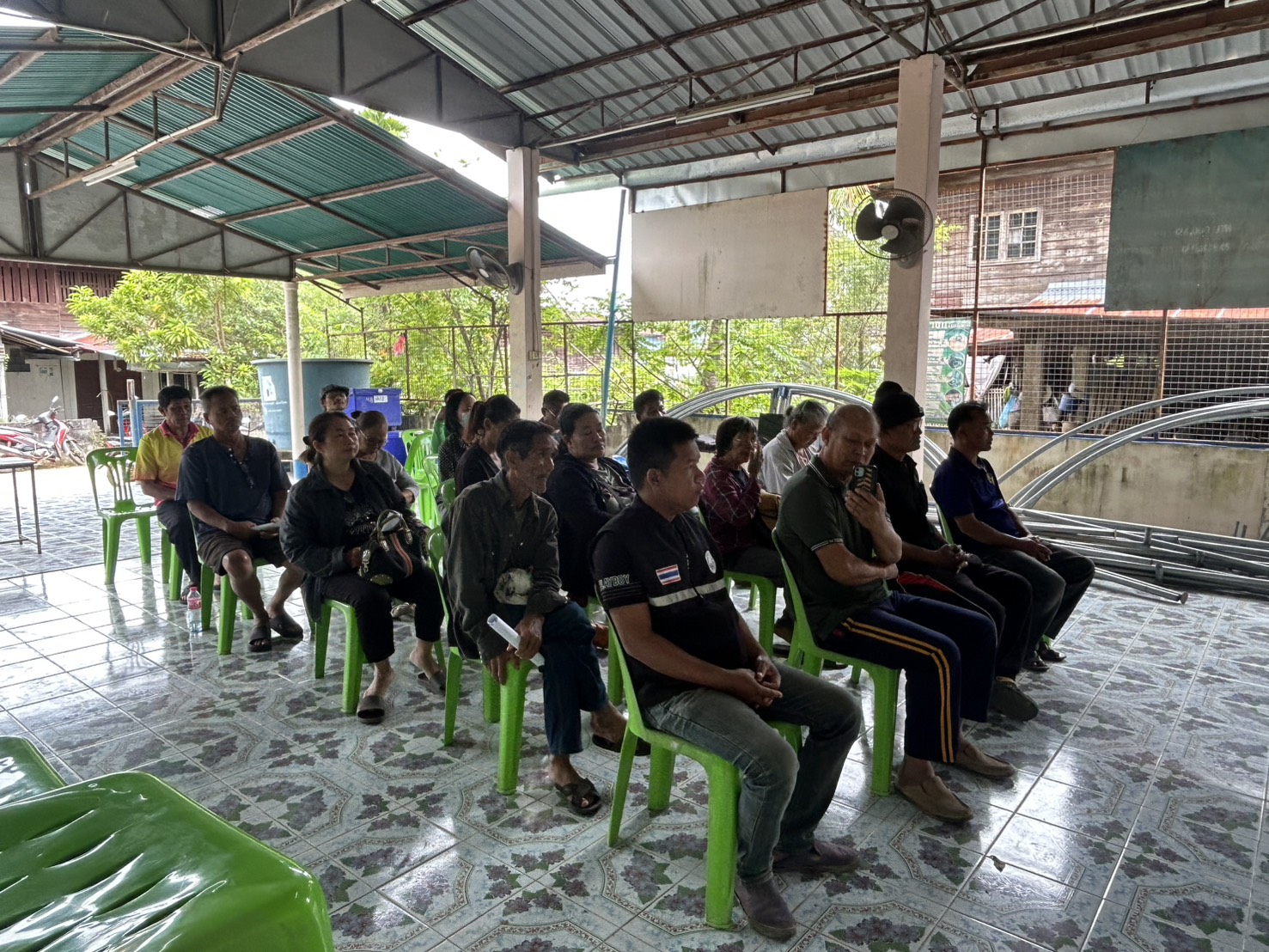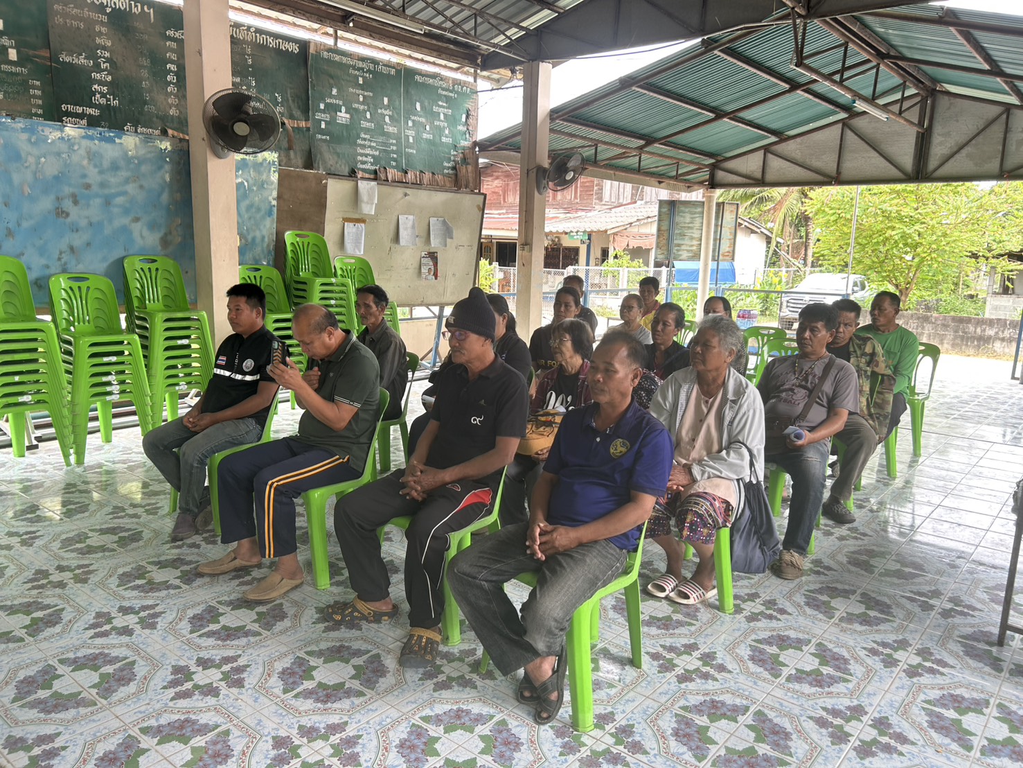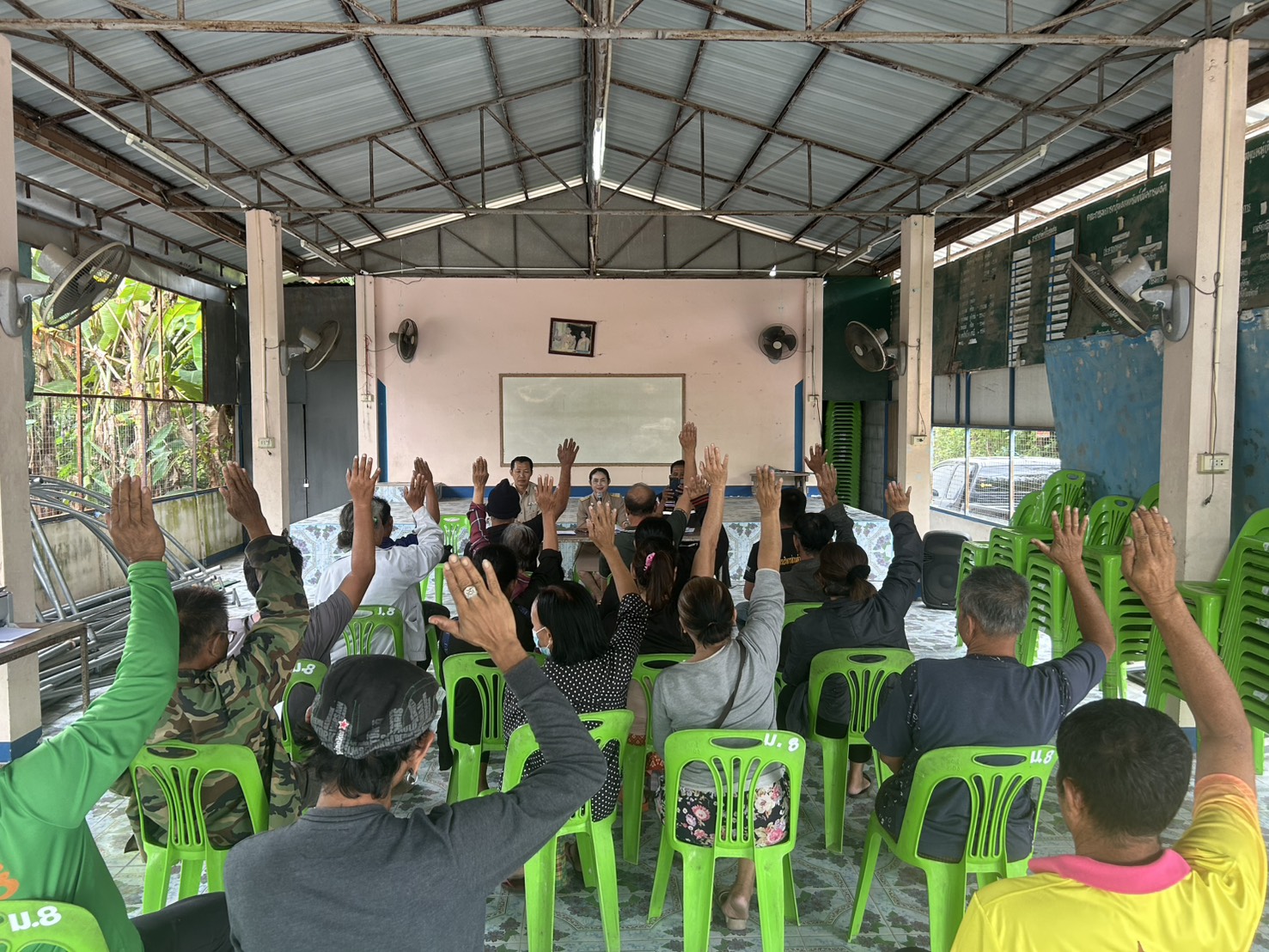 และผู้นำชุมชนร่วมประชาคมการให้ความช่วยเหลือผู้ประสบภัยพิบัติ(อุทกภัย)ปี2568 ณ ศาลากลางหมู่บ้าน หมู่ที่8