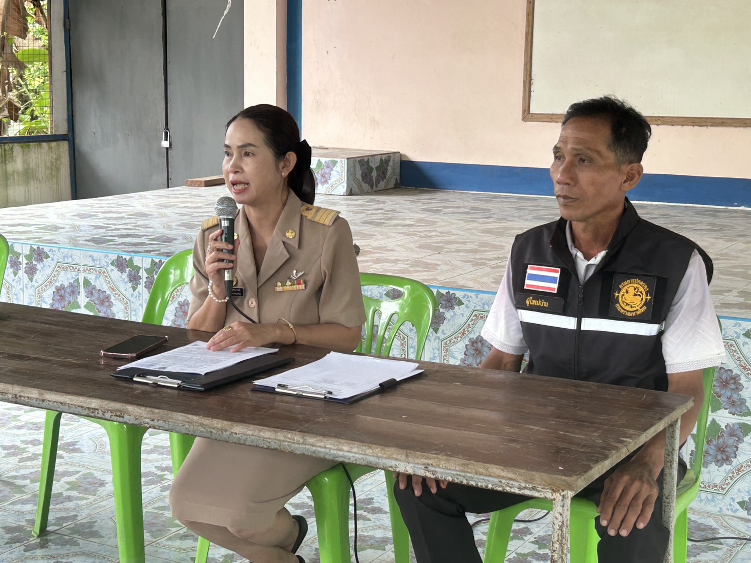 นางสาววไลพร จิตธรรมภรณ์ ปลัดองค์การบริหารส่วนตําบลหนองบ่อ นายพรชัย ก้อนคำ เจ้าพนักงานป้องกันฯ