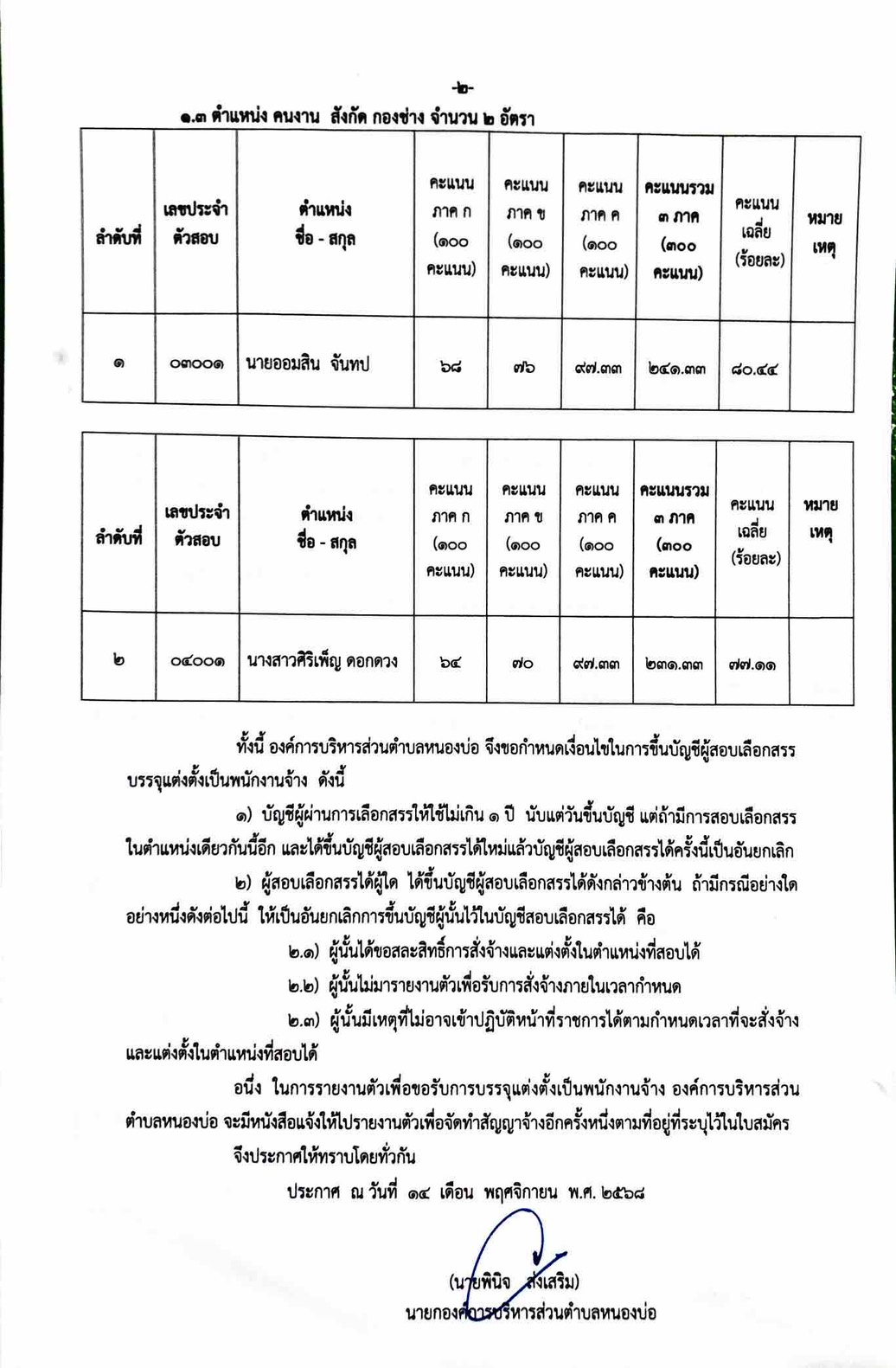 ประกาศรายชื่อและการขึ้นบัญชีผู้ผ่านการสรรหาและเลือกสรรเพื่อบรรจุแต่งตั้งเป็นพนักงานจ้าง